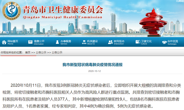 我也是昨天看到青島衛(wèi)健委了解到的,青島市在昨天發(fā)現(xiàn)了3例新冠肺炎無癥狀感染者后,立刻組織了大規(guī)模的流調(diào)排查和分類檢測(cè),并且將密切接觸者和市胸科醫(yī)院的相關(guān)人員作為高風(fēng)險(xiǎn)人群進(jìn)行重點(diǎn)監(jiān)測(cè)。