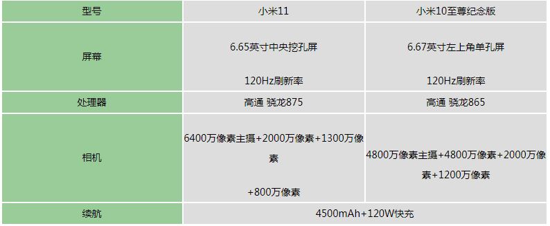 小米10、小米11參數(shù)對比: