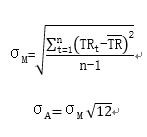 SigmaA表示歷史年化標(biāo)準(zhǔn)差(歷史年化波動率);SigmaM 表示月度總回報率的標(biāo)準(zhǔn)差;n 表示計算期間所含月數(shù);TRt表示第 t個月的基金總回報率;TR 拔表示n 個月的基金總回報率平均值。